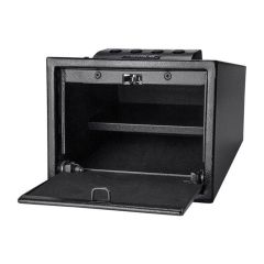 Barska'nın Elektronik Tuş Takımı Hızlı Erişim Kasası, içindeki içeriğe en üst düzeyde güvenlik sağlarken değerli eşyalarınıza hızlı erişim sağlamak için tasarlanmış kullanışlı, kullanımı kolay bir dijital kasadır. Elektrikli Tuş Takımı Kasası, doğru PIN girildikten sonra hızla açılan yay yüklü bir ön kapıya sahiptir ve dahili çıkarılabilir raf, kullanıcıya ek depolama özellikleri sağlar. Kasanın içi, içindeki değerli eşyalara koruma sağlayan bir köpük tabakasıyla kaplıdır. Arka arkaya çok fazla yanlış PIN girilmesi durumunda, bu elektronik kasa daha fazla kurcalamayı önlemek için geçici bir kilitleme moduna girecektir. Barska'nın Elektronik Hızlı Erişim Kasası, sağlam bir yüzeye güvenli montaj için kasanın altında önceden delinmiş deliklere de sahiptir.